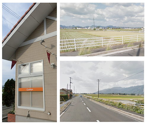 お店は見通しの良い農道の一本道にちょこんと立っています。お車でお越しの方はスピードの出し過ぎにご注意の上のんびりいらしてくださいね。